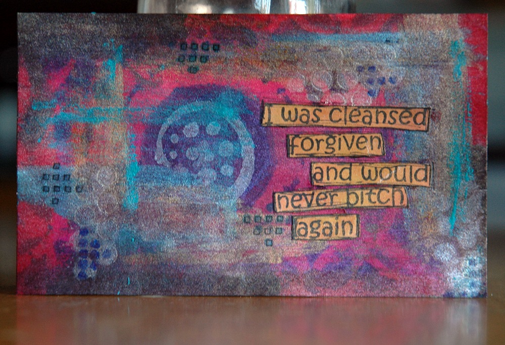 I did these two cards at a crafty night out with some friends. I had new stamps (Dylusions, of course!) and wanted to play!