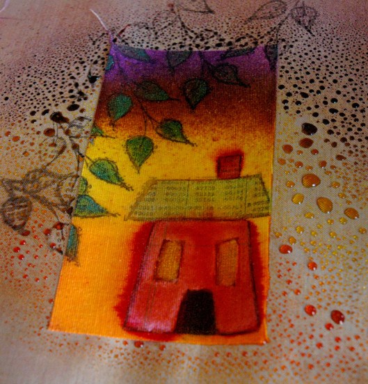 Now, stamp some flourished with the same ink. Because we’ve blended and soften the background colour, the new stamped image will show up well.