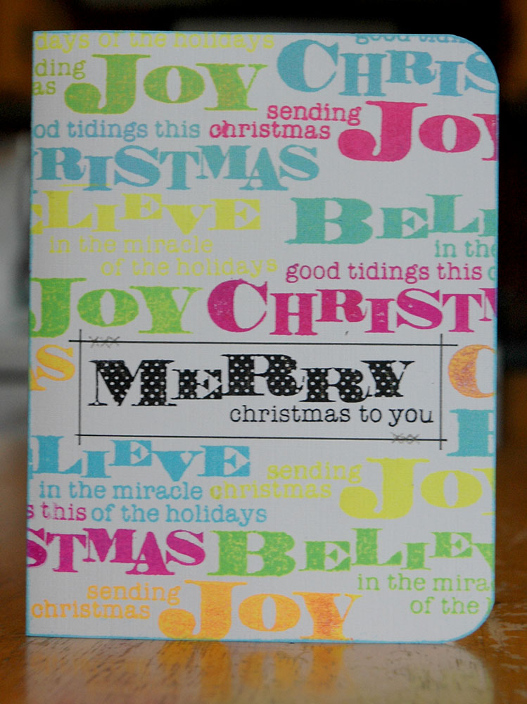 Now, most of us have teens, or preteens, or even littler ones in our lives and they didn’t live through the 80’s. And that means they actually like the neon colours – true fact, my friends! So for those on your Christmas list, I made this card, loosely based on one I made in Orlando at the Collins Rep Show: