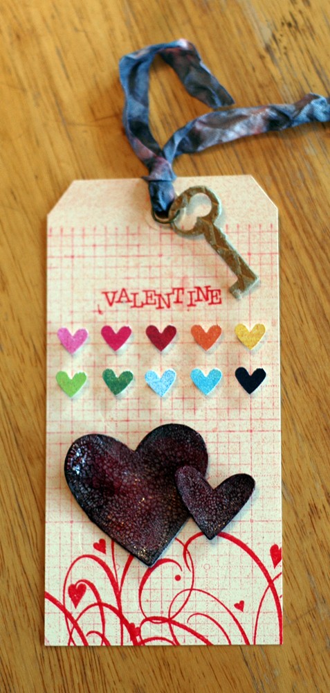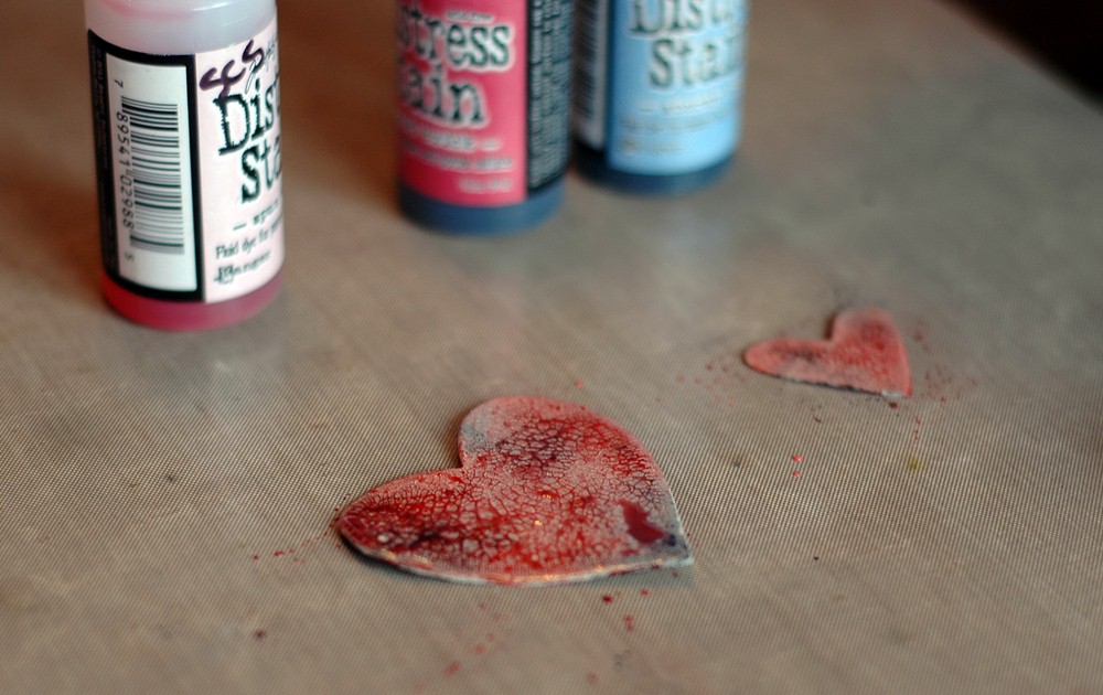 Now, rub your Distress Stains over the crackled shape. Dry in between layers with your heat tool and keep going until you like the look. Keep in mind that the colours lighten as they dry and you can always add more, but not less!
