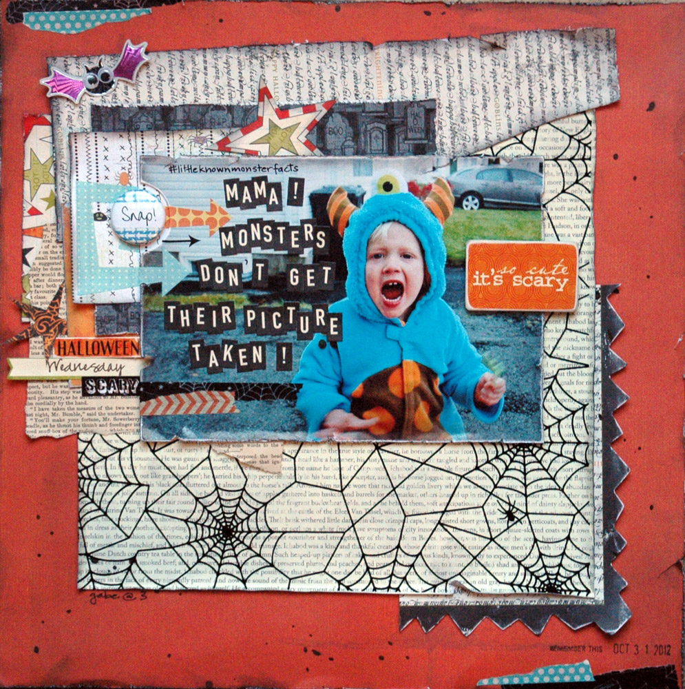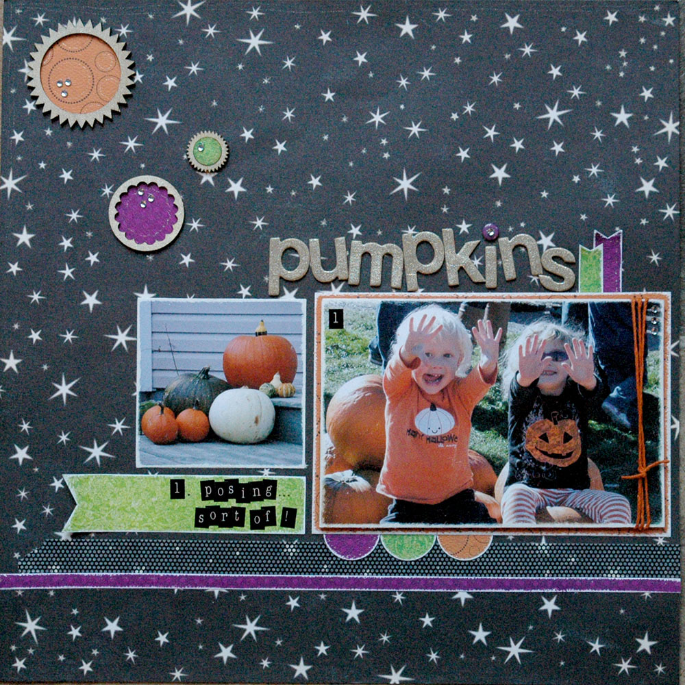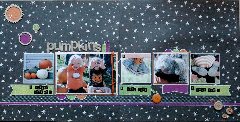 I chose to do a Hallowe’en LO since the Retreat fell right after that event and many people scrap those pics during the weekend. Also, the October Afternoon Witch Hazel line was in the store and I totally fell in love with the Star Thistle paper! 🙂