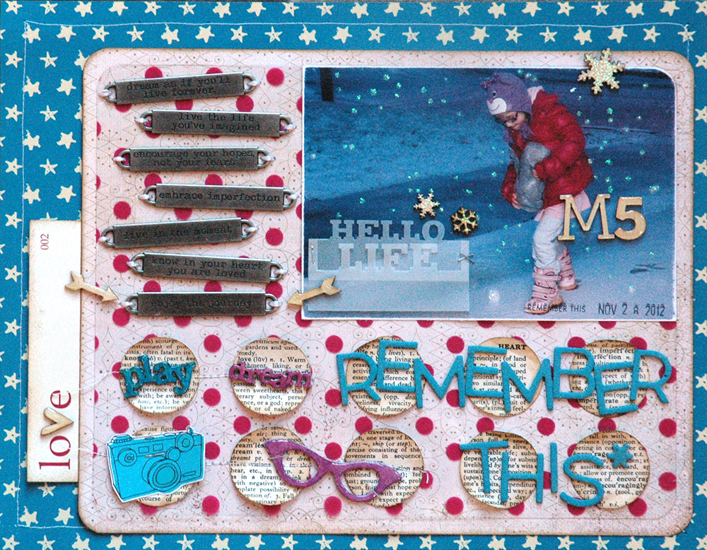 But of course, I’m never happy to stop where I’m supposed to and I turned it into a double for anyone who wanted more pictures or was a 2-pager scrapper. So for the additional price of a single sheet of paper, here’s what Retreat participants could make, if they wanted: